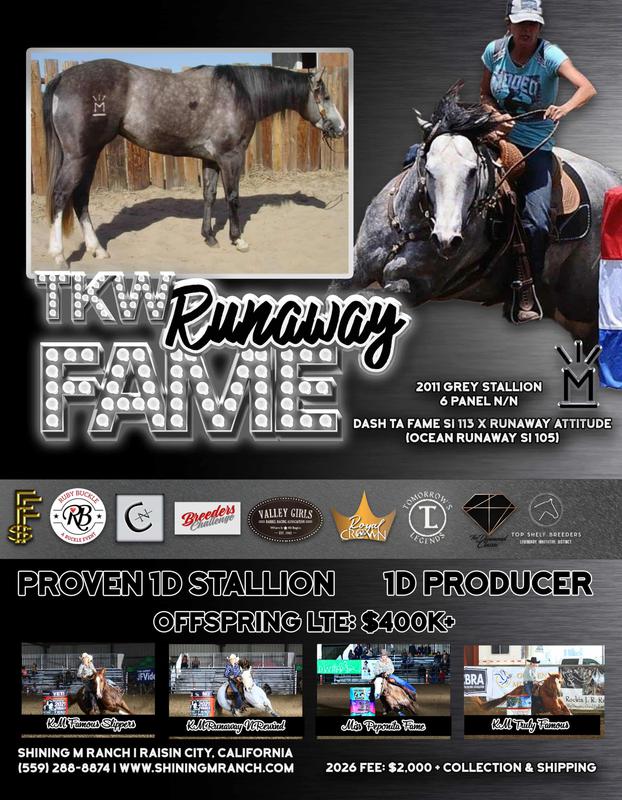 THE BELOW STALLIONS AND THEIR OFFSPRING ARE ELIGIBLE FOR THE STALLION INCENTIVE PROGRAM (SIP) AT THE C-N CALIFORNIA FUTURITY BUT ARE NOT UP FOR BID. 100% OF MONEY RAISED FROM THE BELOW STALLIONS WILL GO TO THE SIP AND FUTURITY ADDED POT